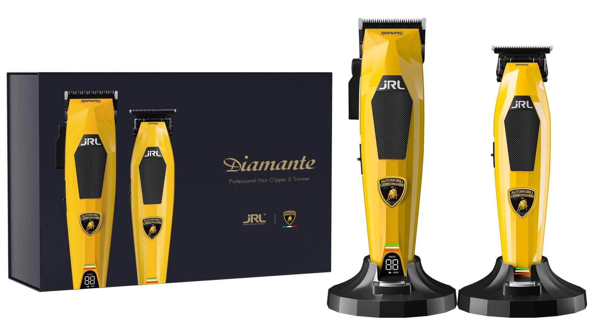 JRL Lamborghini Diamante, to wyjątkowy zestaw do strzyżenia włosów zaprojektowany we współpracy z włoską marką Lamborghini, która jest znana z produkcji luksusowych i szybkich super aut.